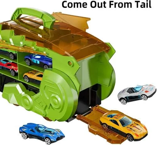Unleash the thrill of racing and adventure with the Dinosaur Cars Racing Transformation Truck! This exciting toy transforms from a mighty dinosaur into a racing truck, carrying 3 sleek metal cars ready to zoom into action.